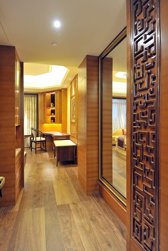 酒店位于香格里拉市中心,距机场仅10分钟车程。客人抵达酒店后,将由身着康巴特色服饰的礼宾员带领沿着回廊走过点缀着铜荷花的平静水池,进入两层楼高的大堂。大堂顶部,橙金色的蚀刻铜片把天窗透入的微妙光折射在另一处室内的水景上,在廊柱间投画出别致的光影空间。